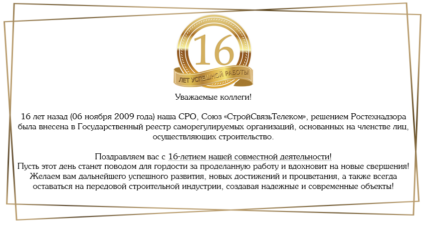 15 июля 2025 года состоялось заседание Совета Союза «СтройСвязьТелеком», на котором было принято следующее решение: